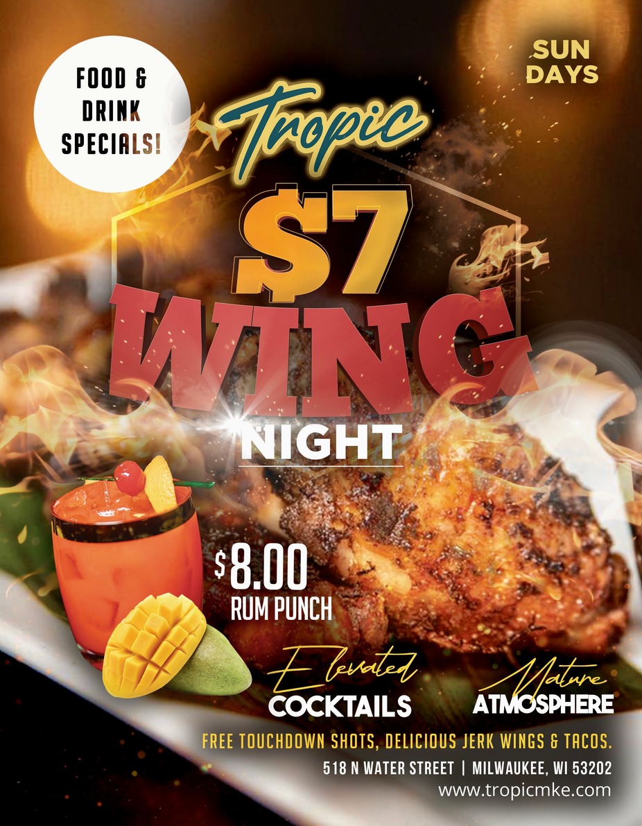 🍹 FOOD & DRINK SPECIALS 🍽️ Enjoy Tropic’s signature flavors all night long!